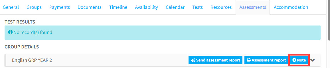 Notes are comments written by teachers about specific areas of a student’s studies. The subjects available for comments are created and managed in School Admin – Settings – Notes. To add a comment click the “Note” button.
