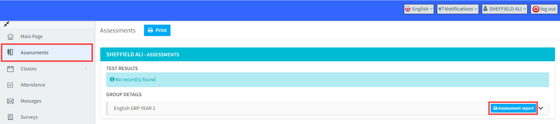 Once all comments have been added, you can email or print a student’s assessment by clicking the appropriate button.