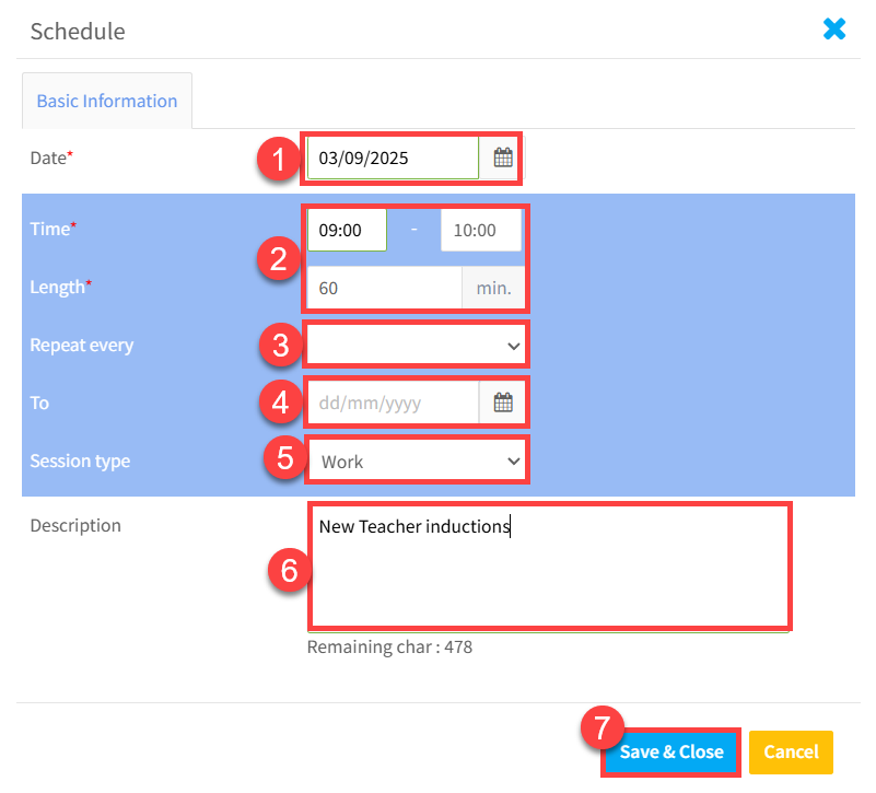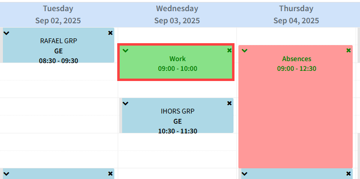 If you also perform non-teaching academic work (e.g., observations, interviews, meetings), you can add these hours yourself. It is also possible to add breaks and absences from work.